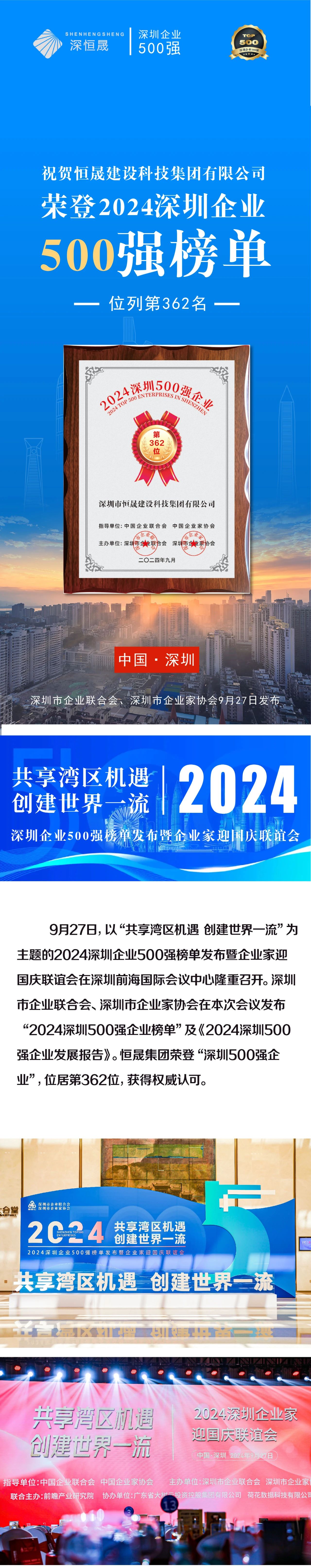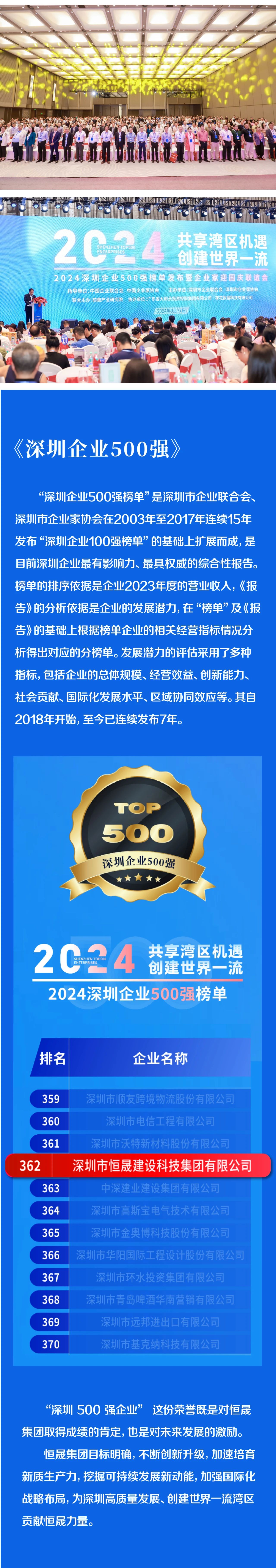 恒晟集團(tuán)榮登“2024深圳企業(yè)500強(qiáng)榜單”